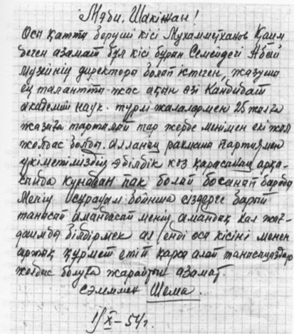 Карлагтағы жолдасының Қ. Мұхамедханов жайлы естелігінен, 1954 ж.